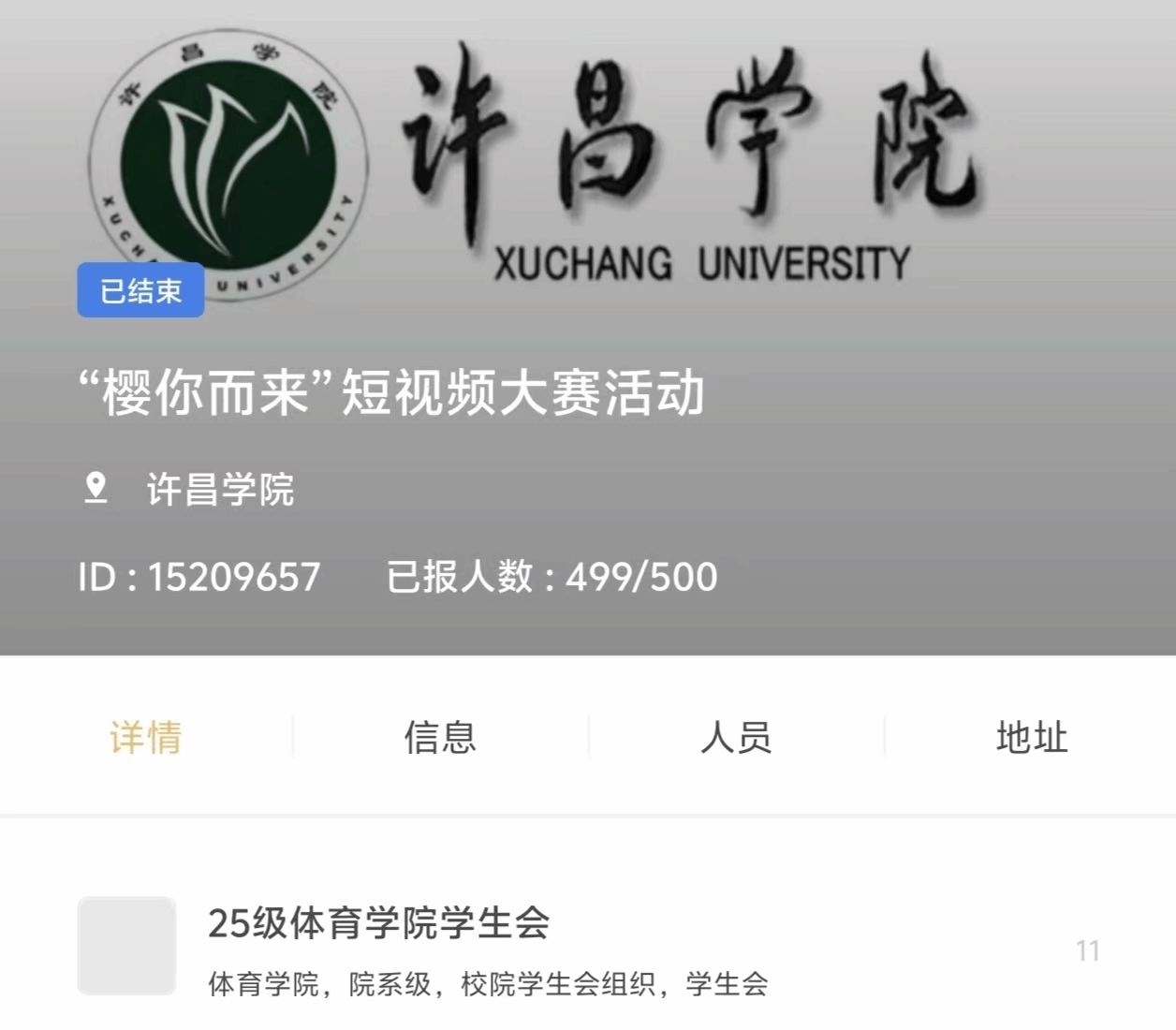 春风送暖,樱韵飘香。为丰富校园文化生活,展现许昌学院学子青春风采,由体育学院主办,面向全校学生举办“樱你而来”樱花节视频大赛。活动以影像为媒,定格春日校园盛景,号召广大同学用镜头捕捉美好、传递青春活力,吸引全校各年级、各专业同学广泛参与。