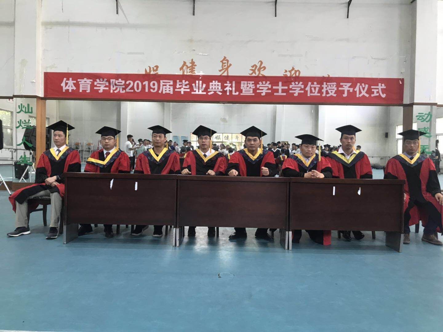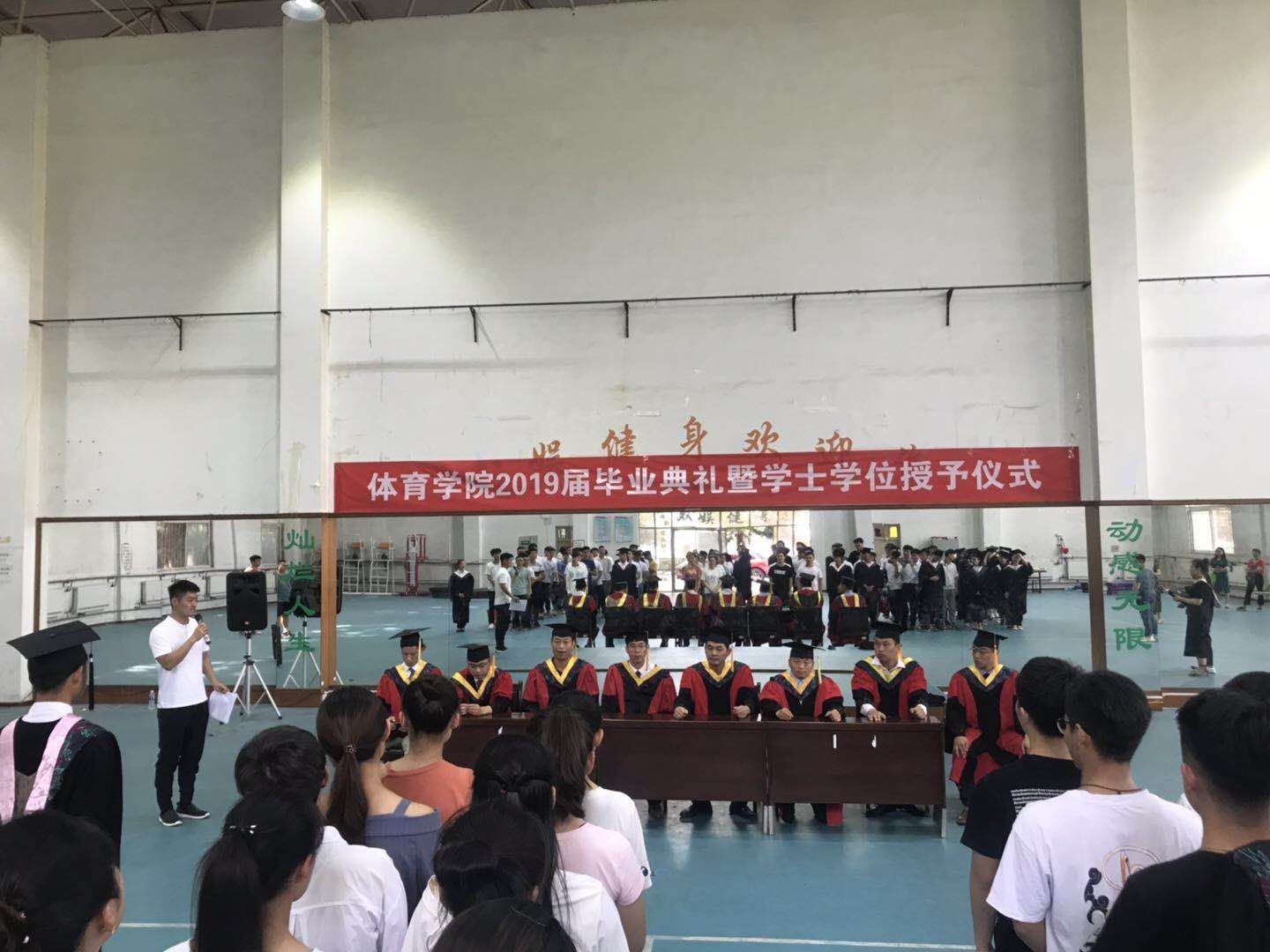 2019年6月12日上午九点,体育学院2019届毕业典礼在健美操馆隆重举行。参加毕业典礼的有:体育学院院长李慧林、体育学院党总支副书记王建民、体育学院副院长朱文杰、董世彪、篮球教研室主任常超、民族传统体育教研室主任刘旭东、姚乐辉博士、杜聪博士及2019届体育学院全体学生,仪式由辅导员张亚辉主持。