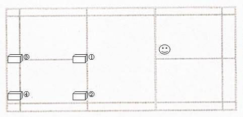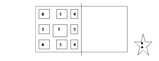 采用中国乒联规则规定的发球方式发球,发球开始时,球自然地置于不持拍手的手掌上,手掌张开,保持静止。抛球高度不少于16厘米,抛球落点必须在端线以后;击球时使球首先触及本方台区,然后越过或绕过球网装置,再触及接发球员(对面)的台区的得分区,空白区域为0分。要求一分钟之内完成12次发球,累计得分多者名次列前,按成绩取前八名。得分区域如下图:(可自带器材)