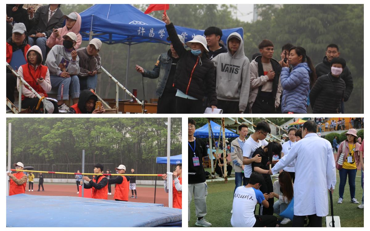 许昌学院官网、网络电视台、许昌学院报、校园广播、新媒体的近200名师生投入到运动会的宣传报道中,为广大师生呈现校运会全景互动报道。大学生通讯社、校报记者团奔波在赛场各个角落,用镜头和文字捕捉每一个有意义的瞬间,网络电视台出动8台摄像机全程取景编播,制作“精彩瞬间”“冠军榜”等多段视频全程直播和拍摄精彩赛事,官方微博“许昌学院运动会”话题的阅读量达到 36万,官方微信、QQ校园号推文阅读量累计4万余次,校园广播制作12档运动会专题节目,每天累计播出6个小时......一张张照片、一行行文字、一段段视频,记录和串联起运动会的精彩。