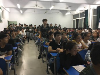 2017年9月18号晚上7点40分,体育学院2017届新生于C—203教室举行入学教育讲座,本次讲座由17级辅导员邱靖逸老师主持,15级辅导员商银行老师为全体新生在讲座中为新生们讲解“奖贷助补勤政策解析”