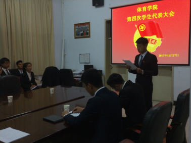 2017年11月27日下午6时,许昌学院体育学院第四次学生代表大会在体育学院会议室隆重召开。许昌学院体育学院团总支书记陈丹老师、许昌学院校学生会代表和各兄弟院系主席团受邀出席大会。来自体育学院各年级的学生代表共35人参加了本次会议。本次会议由我院学生会书记王帅豪主持。