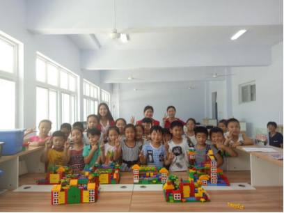 参观结束后,我们组织了同学们上了一堂由许昌学院体育学院的志愿者尚宁辉同学主讲的《寻迹小车》一课,旨在通过讲课的形式让同学们了解基本机器人的拼装技术并让他们可以在知识的引导下可以自己动手拼装出属于自己的小车,做到理论与实践的全面结合。同时高老师也为他们准备了适合低年级同学的活动,以一首《小鸭子》歌曲为主题,让同学们用乐高积木拼出歌曲中出现的因素,并以一幅生动画面将其展示出来,以此来培养同学们的创新动手能力。