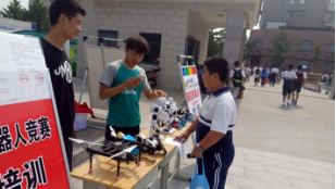 首先,机器人竞赛活动中的高老师向我们说明了今天活动的主要目的是为了让许昌一中的同学们对与此次机器人活动有所了解,让机器人可以走进校园,使同学们对机器人有更深刻的了解。其次,我们的服务队的志愿者们在许昌一中校园内发放了关于本次活动的宣传页,就本次竞赛队员的机器人作品向同学们进行了展示和讲解,同时对于想要更深入了解这个活动的同学提供了微信、QQ官方服务平台,使得同学们可以随时随地的对本次活动进行深入的了解,最后,负责人张老师对今天服务队的工作进行了总结。
