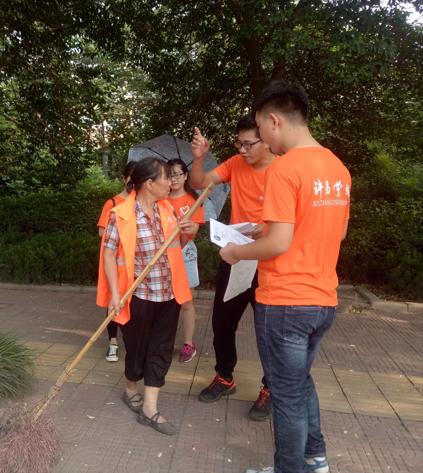 为了更好地体现康复保健队的特色风采,队员们在现场为小区居民做了按摩,同时给他们普及了一些生活中的保健常识。队员们的做法也得到小区居民的赞赏。队员们还特意为环卫工人进行康复保健知识的讲解,告诉他们在工作后怎样自我放松,去缓解一天的疲劳。同时我们也了解到了环卫工人的不易,从内心深处感觉得环卫工人为一个城市的精神面貌做出了巨大的努力。环卫工人被人们赞誉为"城市黄玫瑰"、"马路天使"和"城市美容师"是当之无愧的。全体队员诚挚地邀请他们到许昌学院国医馆康复保健手法,希望他们在建设美丽城市无私奉献的同时更加注重身体的健康、更好的服务社会。