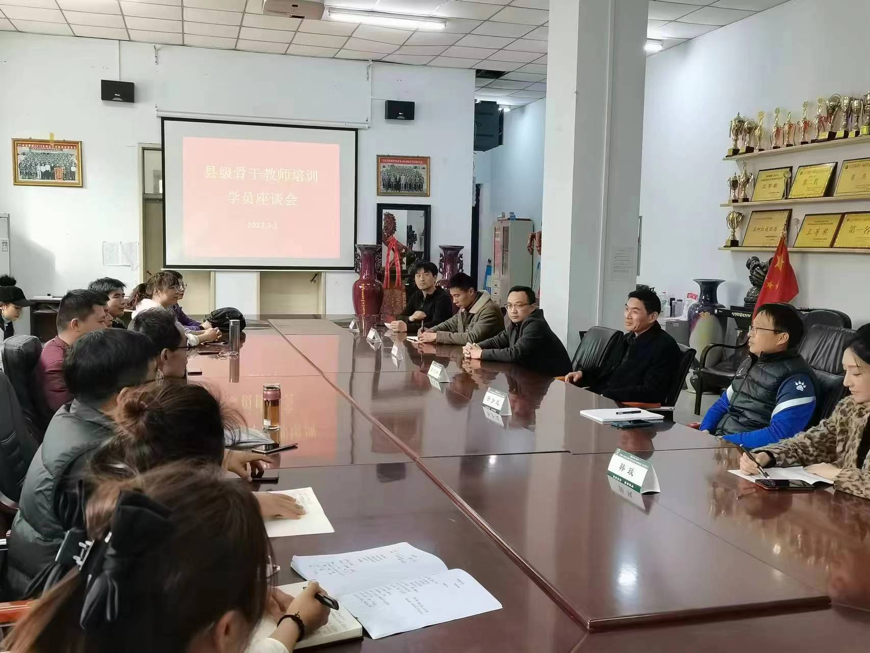 2023年3月1日下午,我院在体育学院办公室召开了“国培计划(2022)农村骨干教师能力提升培训项目—县级骨干教师培训(小学体育乒乓球)”座谈会。座谈会邀请项目首席专家体育学院院长李慧林教授参加,项目秘书姚乐辉老师,班主任老师亓少远、韩琰、刘文和李学良共同参与了座谈会。