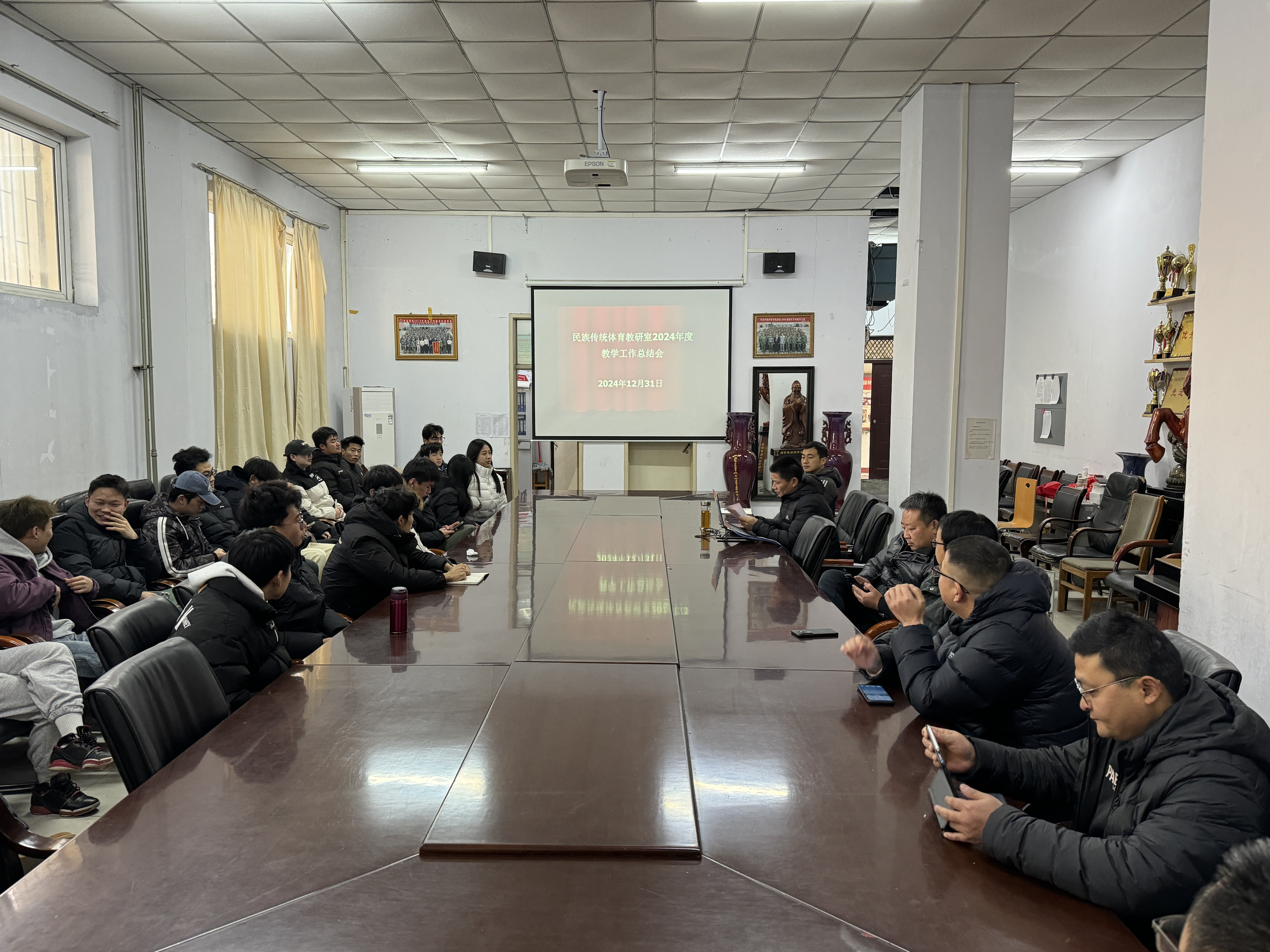 2024年12月31日,在体育学院办公室召开武术教研室全体会议,教研室全体教师及21级、22级、23级全体武术专选学生参会,并邀请体育学院教学工作办公室主任邓永川老师列席会议,会议由教研室主任刘旭东主持。