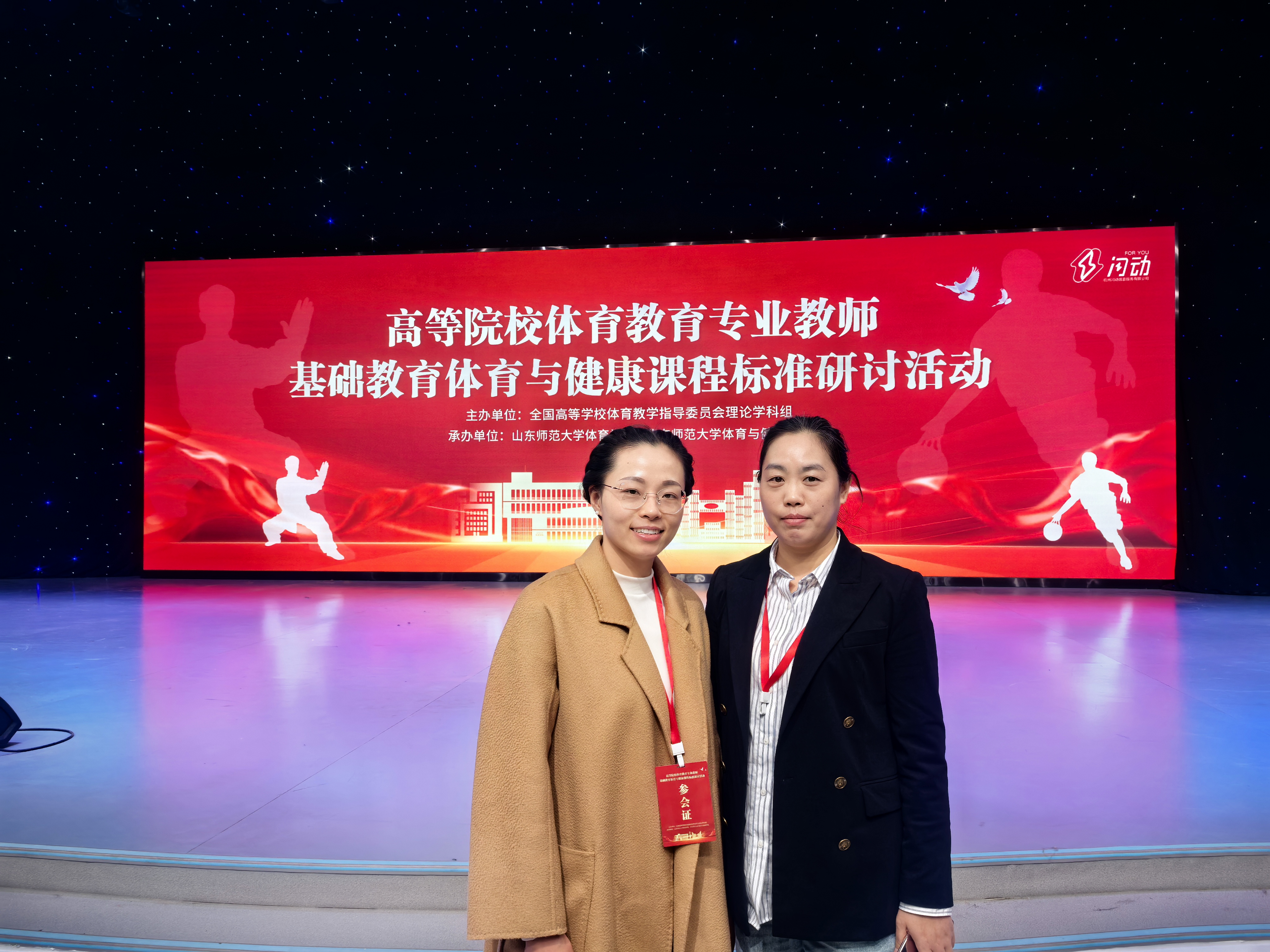 2024年11月6日至9日,我院体育理论教研室的商银行、邱茜两位教师赴山东师范大学参加了“首届基础教育体育与健康课程标准研讨活动”。此次研讨活动旨在深化对基础教育体育与健康课程标准的理解,提升高等院校体育教育专业人才培养质量,促进体育教育的改革与发展。