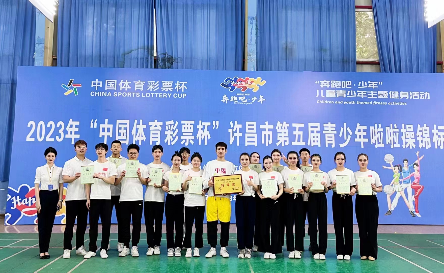 2023年5月21日,许昌市第五届青少年啦啦操锦标赛圆满落幕。许昌市第五届青少年啦啦操锦标赛是由许昌市体育局举办的一次大型啦啦操比赛,本次比赛共有38支代表队,958人参加,是本市啦啦操赛事的又一新的突破。许昌学院体育学院Cheer Shinging代表队青年组在花球、街舞自选、自由舞蹈中获得特等奖。