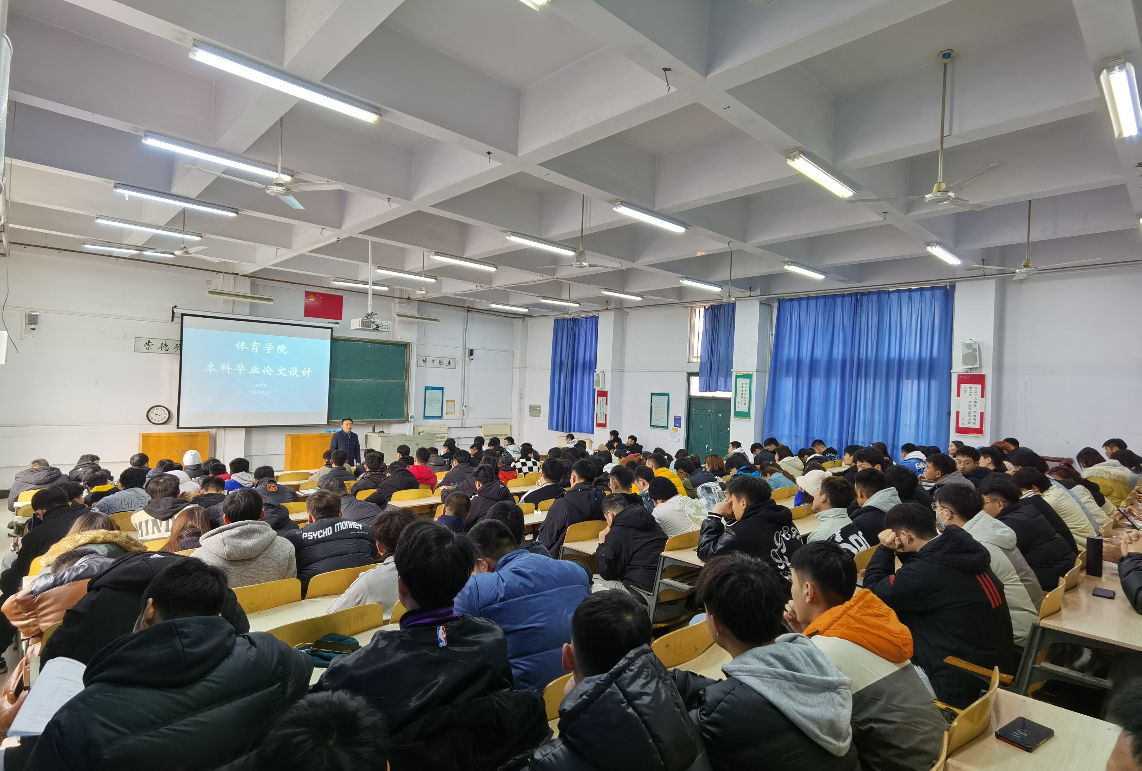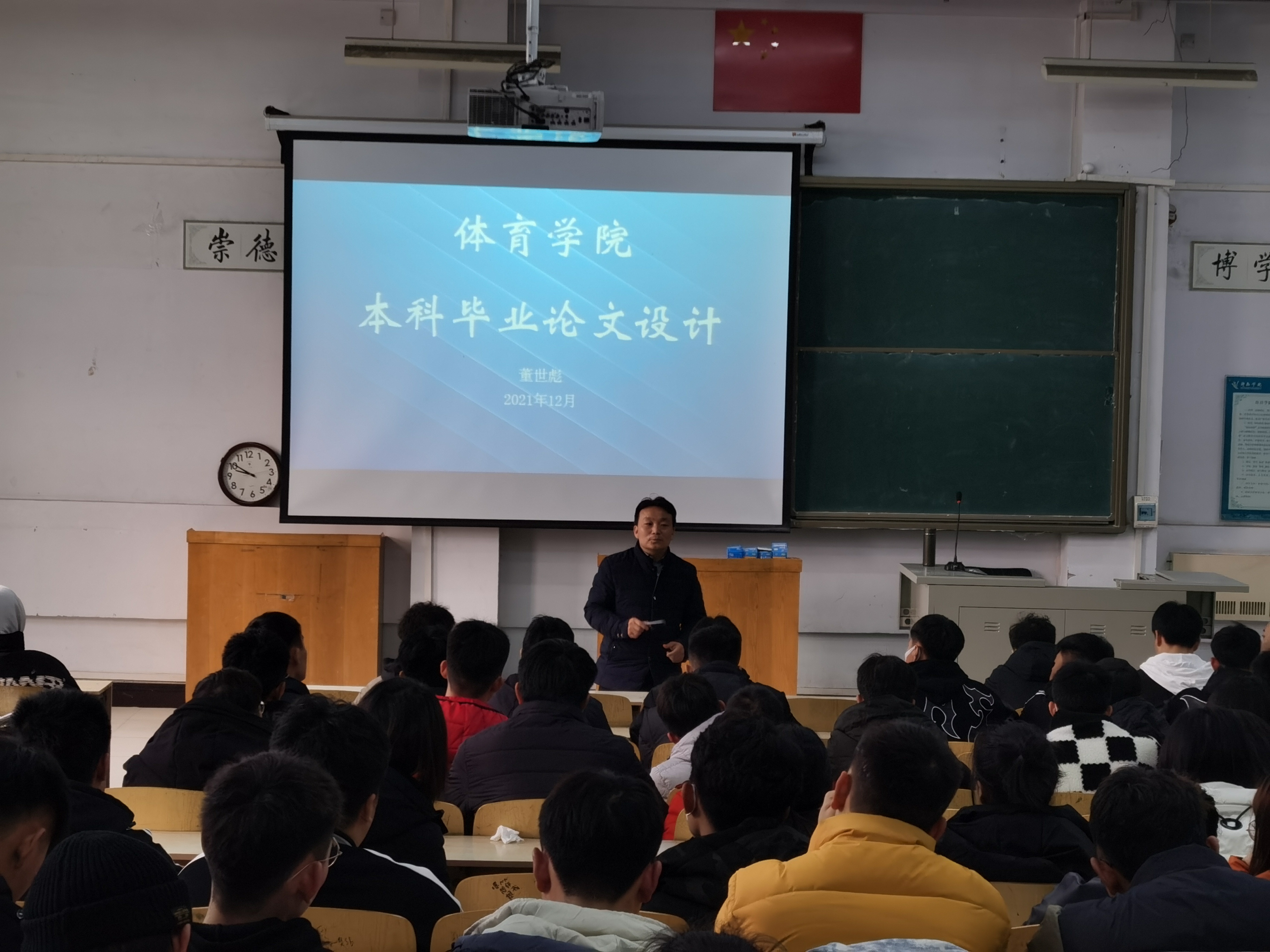 12月10日上午,体育学院2022届本科毕业论文设计《开题报告说明会》在A合九召开,我院副院长董世彪,党政办公室副主任邓永川和2018级体育教育、社会体育指导与管理专业全体学生参加。