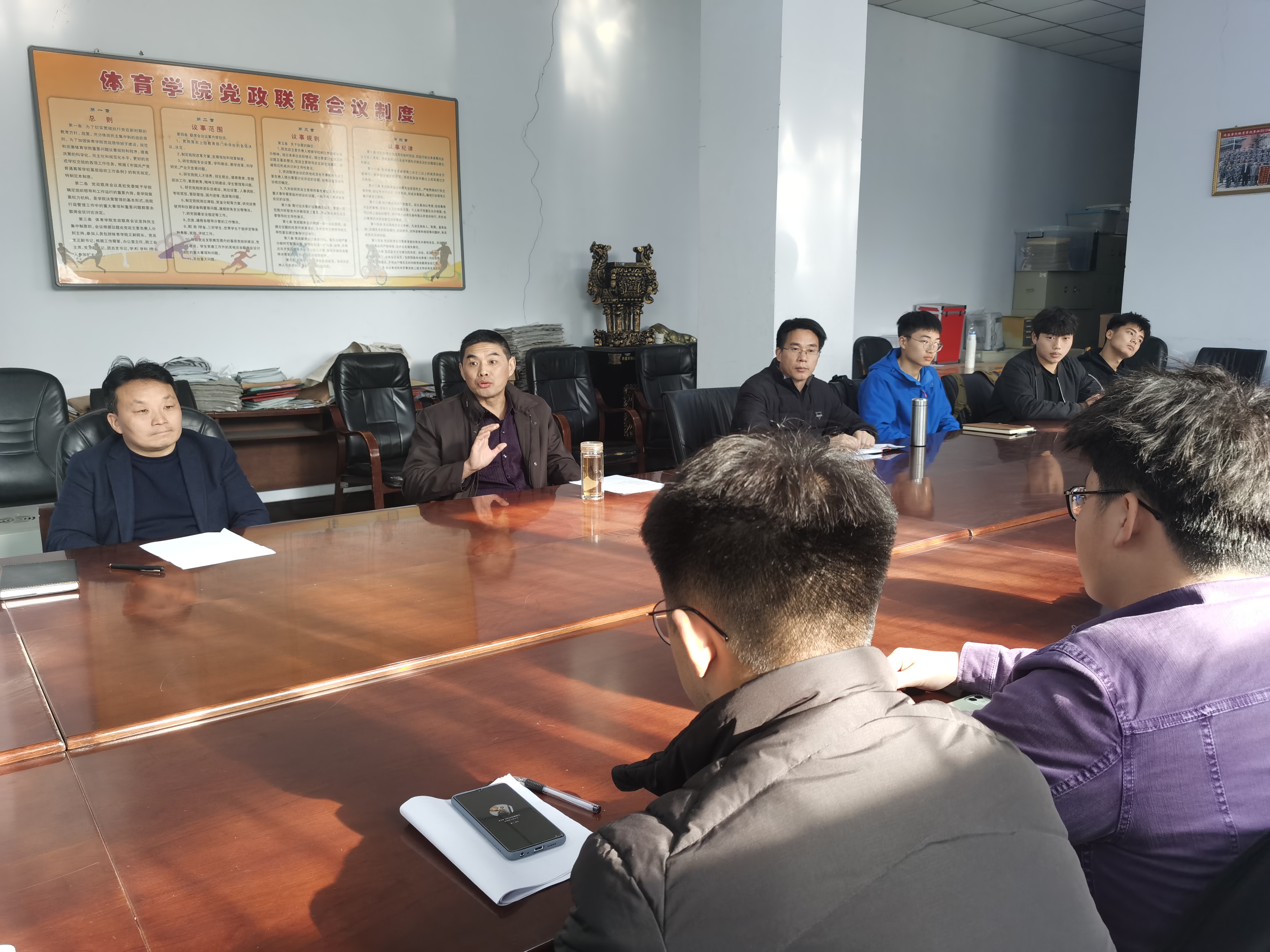 会议伊始,朱文杰书记对我院2021年考研情况做出汇报。2021年我院考研上线人数比例再创新高,毕业年级学生共计172人,考研上线28人,多名同学进入中国地质大学、首都体育学院、成都体育学院、武汉体育学院、郑州大学、河南大学等高校复试环节。