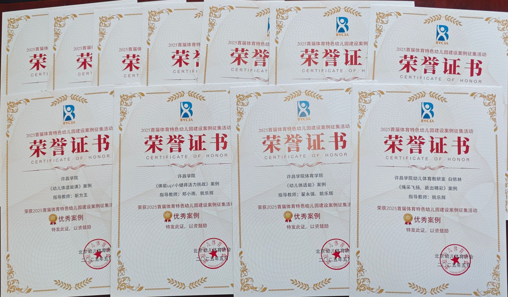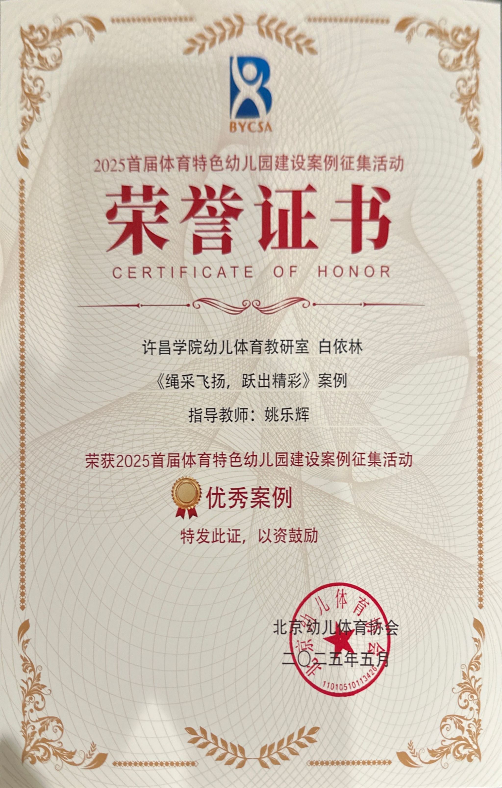 在本次会议举办的“2025首届体育特色幼儿园建设案例征集活动”中,体育学院幼儿体育专选学生积极投稿参赛,多名学生凭借扎实的专业知识和独特的创意荣获“优秀案例”奖。这些获奖案例不仅展现了我院学生在幼儿体育教育领域的创新思维和实践能力,也为体育特色幼儿园建设提供了宝贵的参考。
