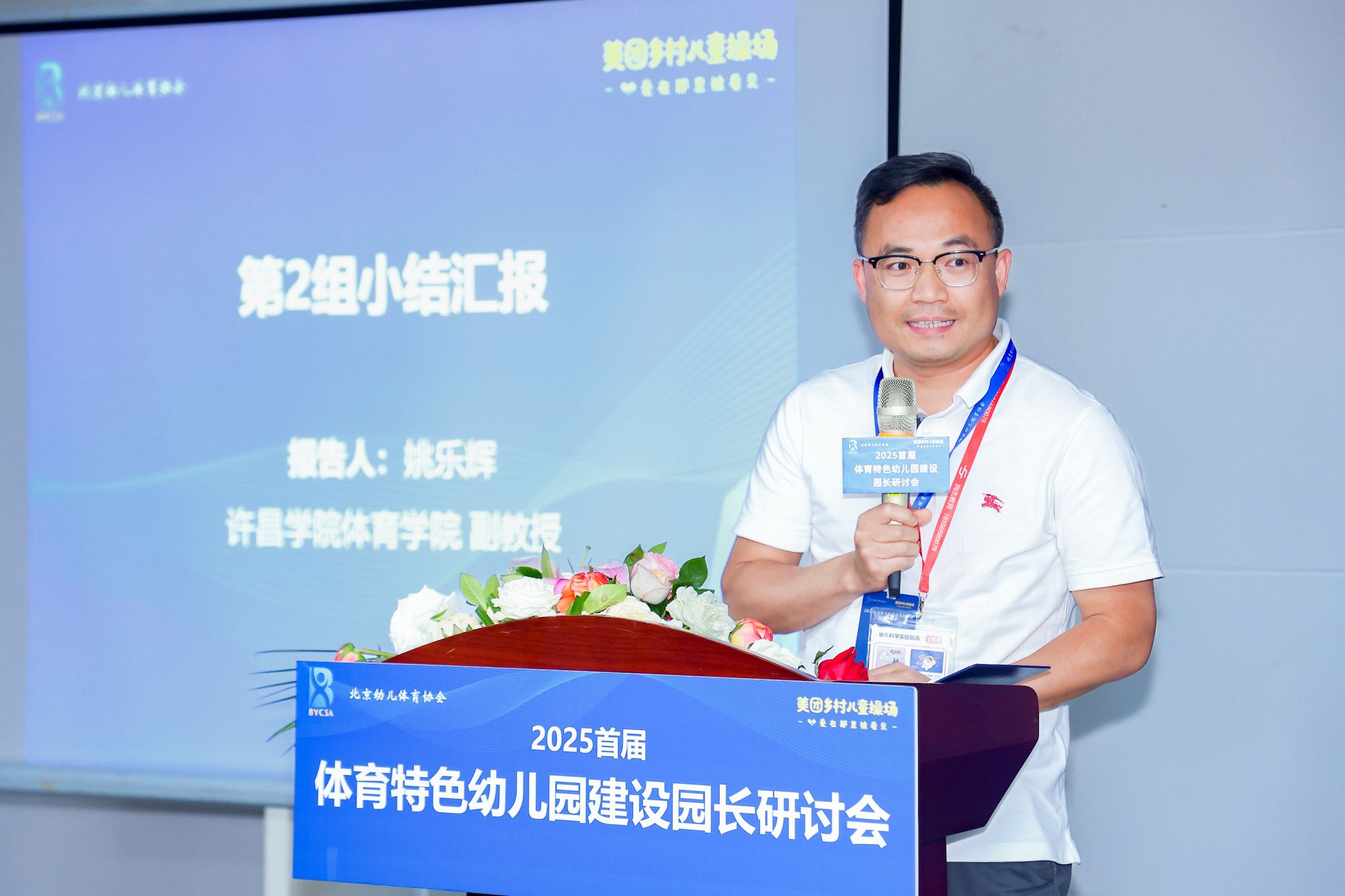 我院优秀案例指导教师姚乐辉副教授在“体育特色幼儿园师资培养与团队建设”专题研讨会上,围绕乡镇幼儿园面临的师资结构性矛盾问题进行了总结汇报。姚乐辉老师指出:当前学前教育教师普遍缺乏体育专业知识,导致在开展幼儿体育教育时存在一定的局限性,并建议将“幼儿体育教学模块课程”纳入幼师培训体系,积极研发幼儿体育课程标准,推动“懂体育的园长+专业教师”师资队伍建设模式积极落地。