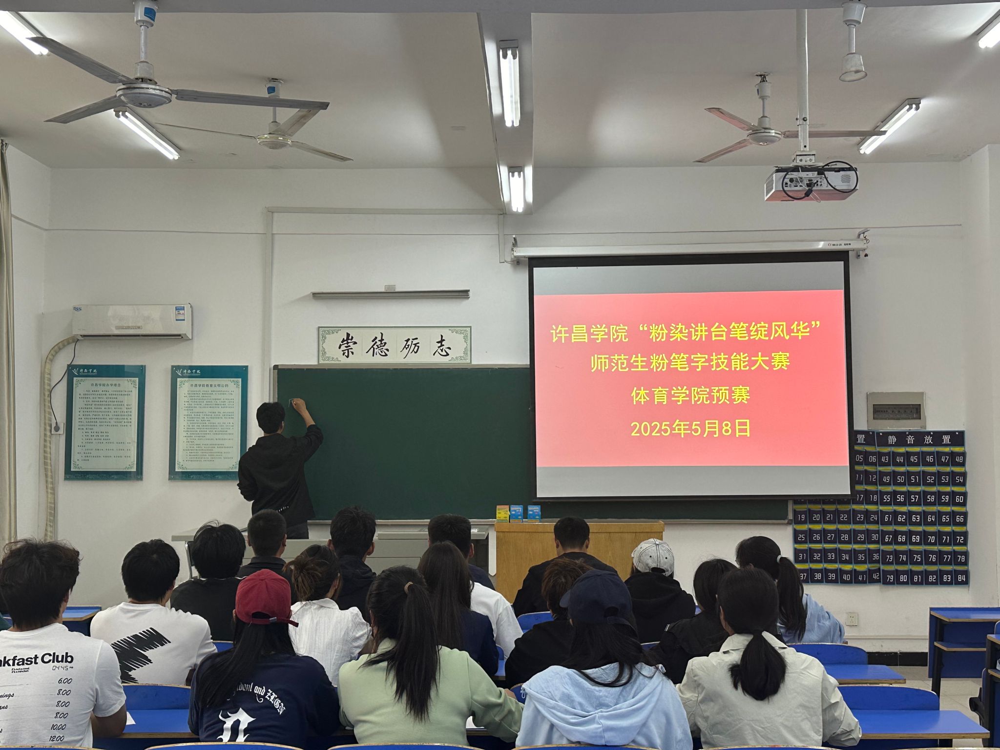5月8日下午3点,体育学院在医学院2A2-213教师举办“粉染讲台、笔绽风华”师范生粉笔字技能预赛,22级、23级、24级共40余名同学参加比赛。本次评委由民族传统体育教研室主任刘旭东、教学办公室主任邓永川、陈龙、张亚恒博士担任。