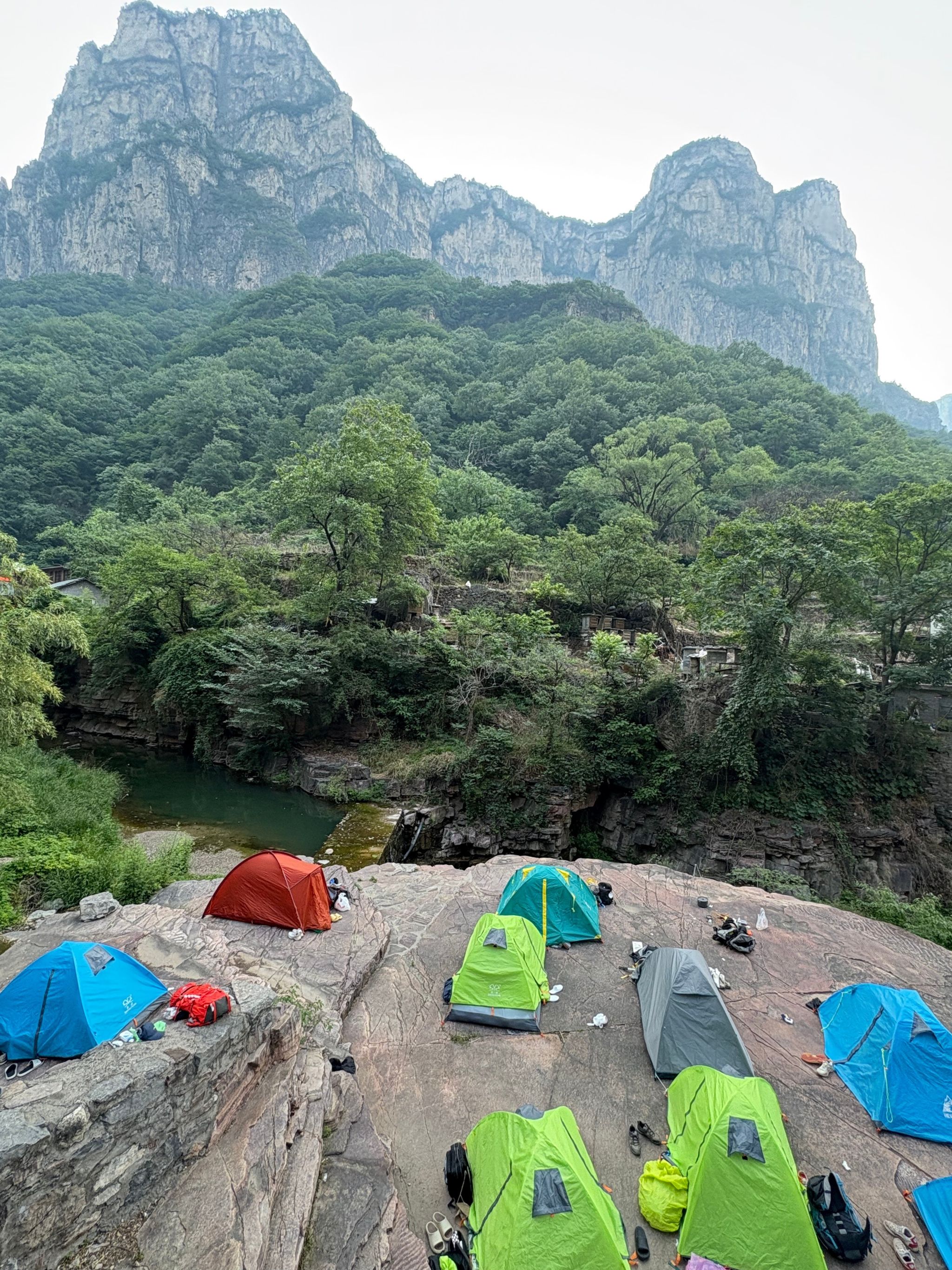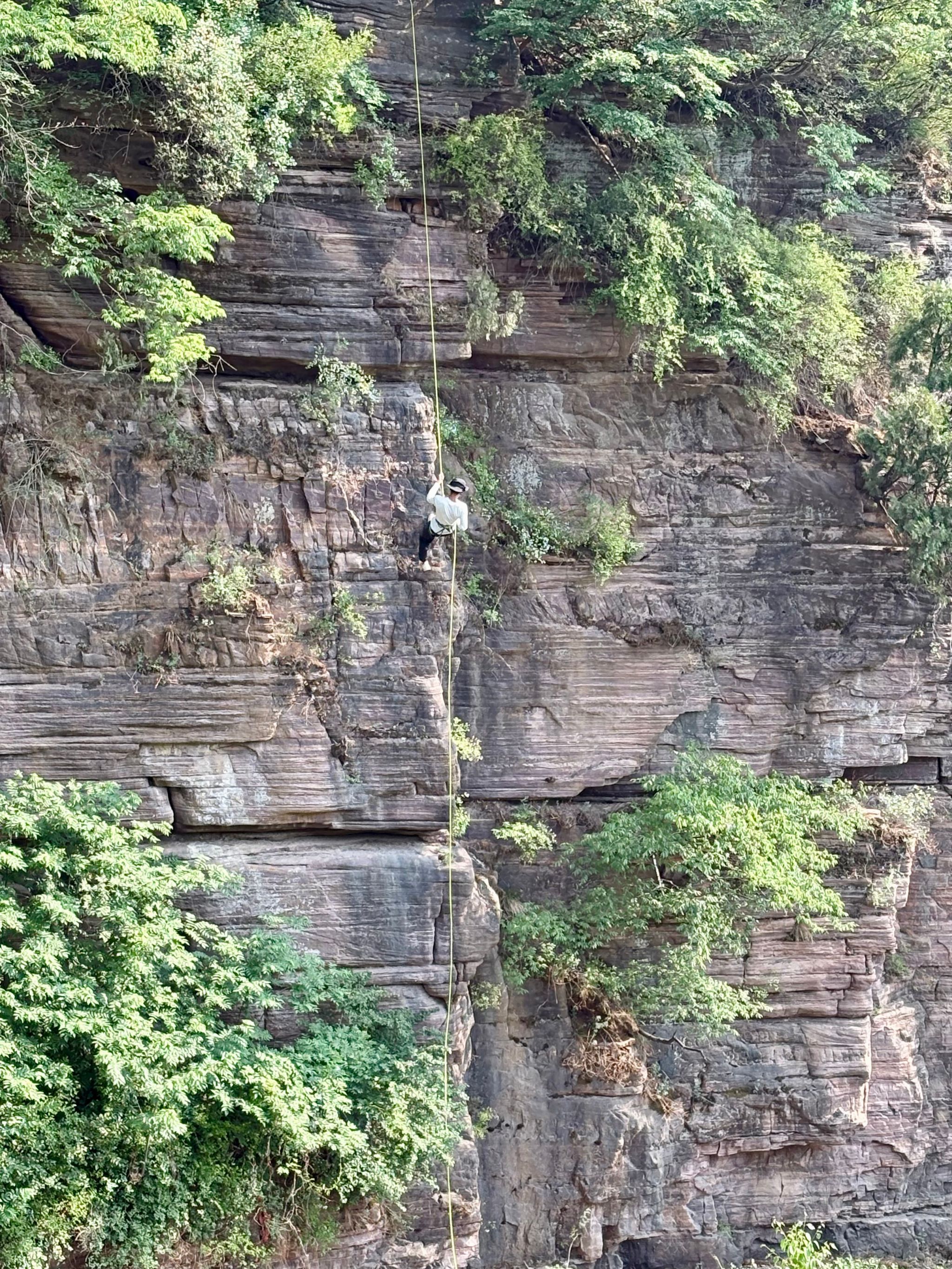 此次实践教学场地选择了河南新乡南太行山区徒步线路,全程约70千米,累计爬升1400米,开展了背包装填及调节、洞穴探险、崖壁行进教学,并进行岩壁绳索下降和露营考核。同学们不仅熟练掌握了路线导航、锚点判定、绳索技术等户外硬技能,还在露营地选择、搭建等方面积累了丰富的经验,南太行独特的嶂石岩地貌,赤色绝壁层层叠叠,深邃峡谷神秘莫测,沿途还有古朴宁静的村落,也为同学们带来了一场自然与人文交融的奇妙体验。