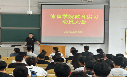 6月10日上午11点,体育学院在A合五教室召开22级体育教育专业教育实习动员会,体育学院副院长董世彪教授,教学工作办公室主任邓永川,陈龙博士,辅导员刘文老师及22级体育教育专业全体学生参会。会议由刘文老师主持。
